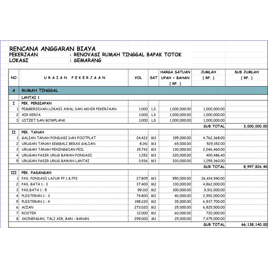 Rencana Anggaran Biaya (RAB) Rumah